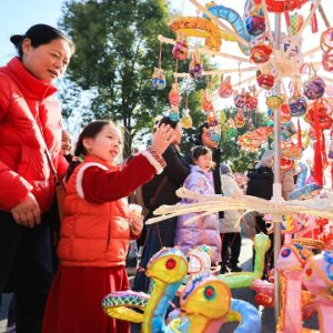 1月29日,人们在江苏省南京市夫子庙花灯市场挑选花灯。(苏阳 摄)