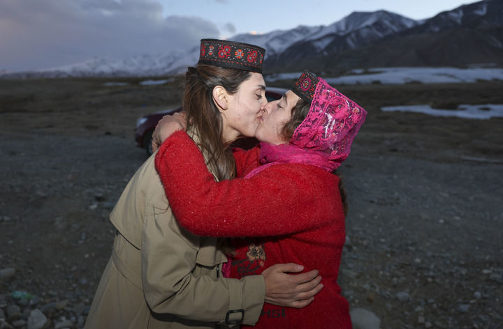 一位78岁的阿姨捏着艾尔开牙的手,眼泪止不住地流,嘟囔着“这么短的时间,又要走了”。还有几位女性长辈,按着传统礼仪,亲吻她的额头、脸颊,说着祝福的话语,望着她转身远去。