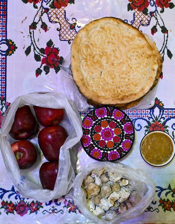 这是1月3日在新疆塔什库尔干塔吉克自治县瓦恰乡夏布孜喀拉村艾尔开牙·多力开家中拍摄的父母为她准备带走的食品和母亲亲手制作的花帽。新华社每日电讯记者 陈朔 摄