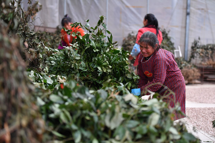 2024年12月10日,工人在湖南省郴州市桂东县沤江镇寒口村的中药材产业示范园工作。新华每日电讯记者 陈泽国 摄
