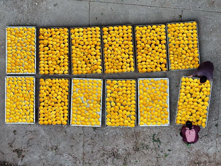 2024年12月10日,在湖南省郴州市桂东县沤江镇寒口村的中药材产业示范园,工人在晾晒瓜蒌。新华每日电讯记者 陈泽国 摄