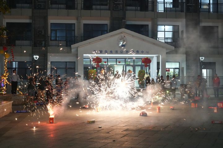 1月28日除夕晚上,晋卿岛的人们一同放烟花守岁。