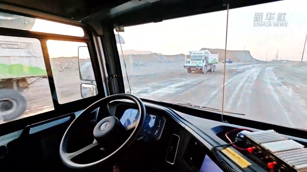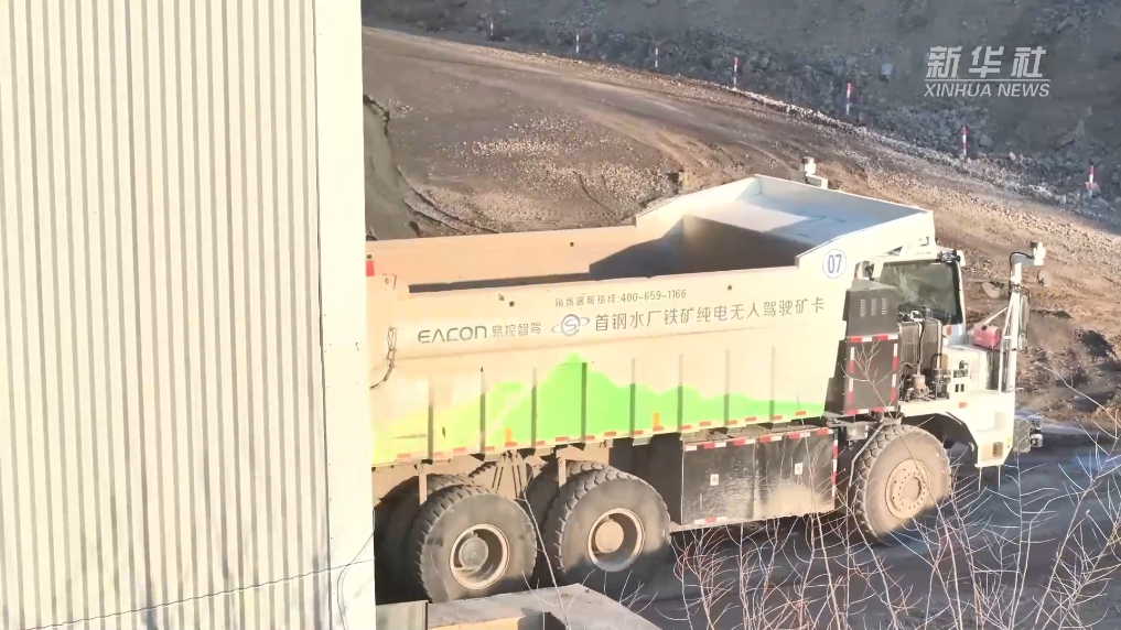在位于河北省迁安市的首钢矿业公司水厂铁矿,一辆辆电动宽体矿用卡车来回奔忙。不同寻常的是,这些卡车驾驶室内空无一人。