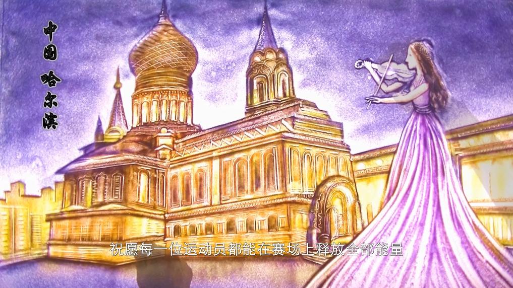 创意沙画《逐梦亚冬会 相约哈尔滨》用指尖绘就了哈尔滨的冰雪美景以及各类冰雪竞技项目,振奋人心。让我们一起为亚冬会送上一份祝福,祝愿每一位运动员都能在赛场上释放全部能量,让梦想在冰天雪地中绽放最耀眼的光芒。
