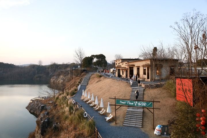 游客在安吉梅溪镇红庙村“深蓝计划”咖啡馆的矿坑边休闲赏景(2025年1月24日摄)。新华社发(潘学康摄)