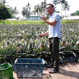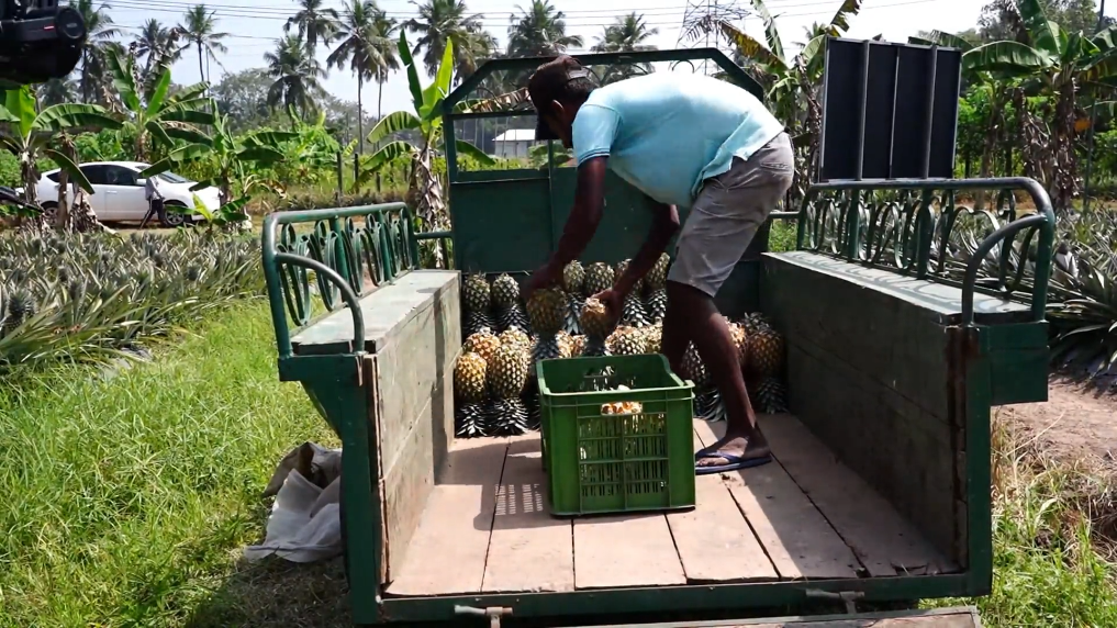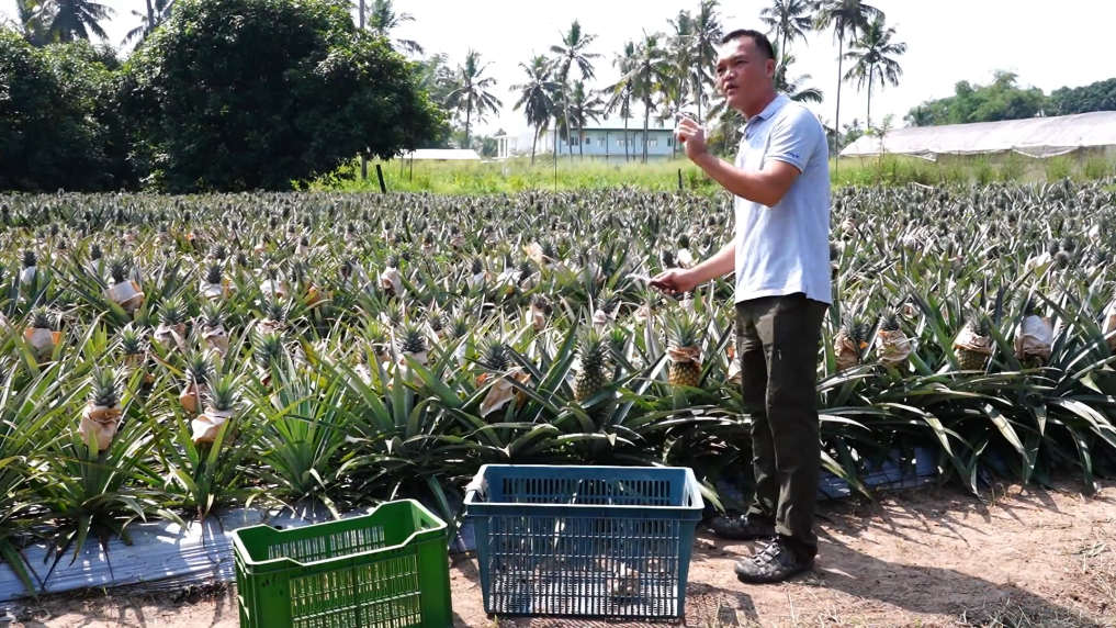 正值新春佳节,中国专家们坚守在斯里兰卡,对当地农技人员和农户进行菠萝无伤采收培训。