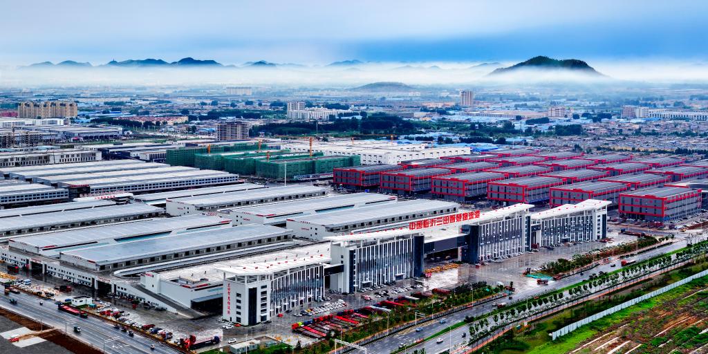 图为临沂兰田智慧物流港俯瞰图(无人机照片)。(刘笃龙 摄)