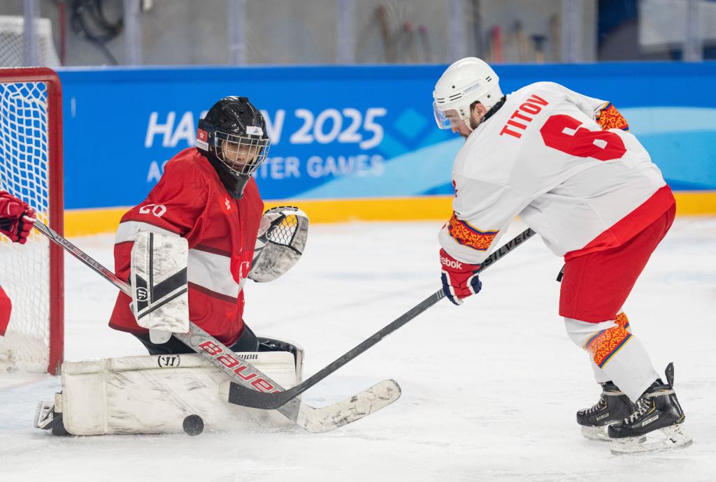 而这次,它却飞了起来,而且飞得很高很远——10日晚,哈尔滨体育学院大学生滑冰馆,亚冬会男子冰球八强晋级战中国香港队与吉尔吉斯斯坦队比赛进行到第二节,在一次激烈的拼抢中,冰球“脱离”地心引力,飞到超过十米高的上层看台,落在观众席的地面上。