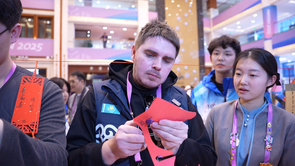 在亚冬会运动员村,浓郁的中国传统文化体验活动吸引多国选手驻足参与。大家亲手制作象征团圆的红灯笼,感受方正剪纸的精妙技艺,观看光影流转的皮影戏表演。