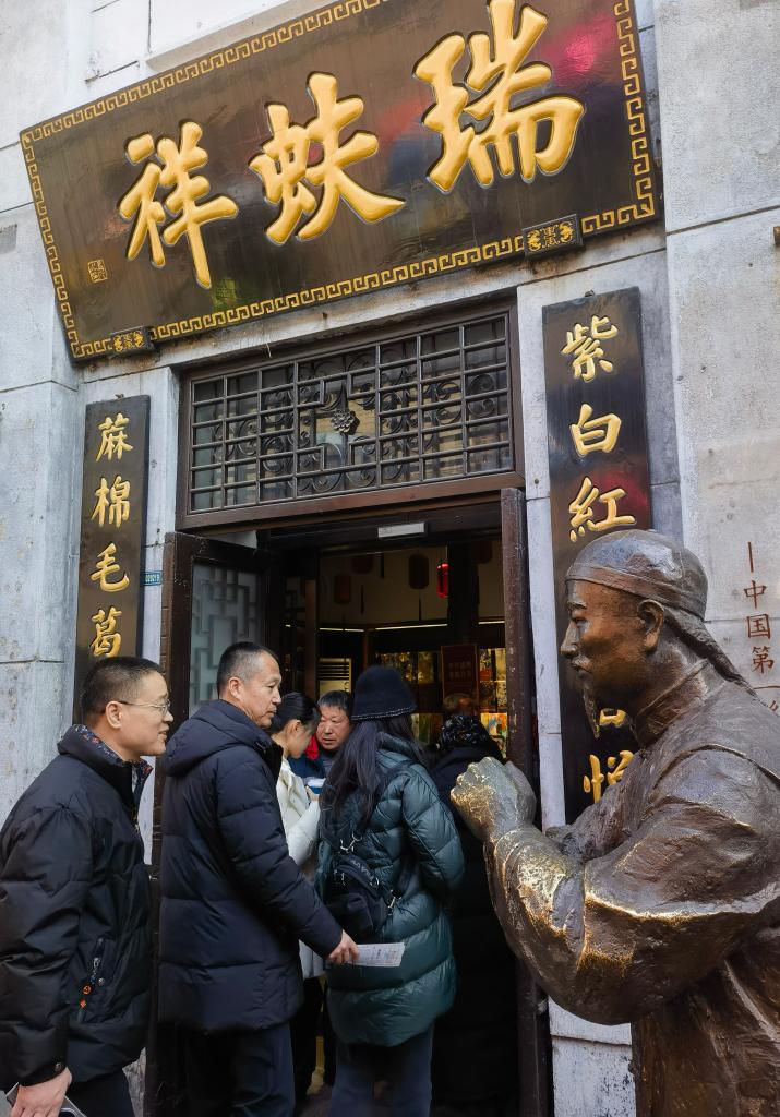 游客进入位于周村古商城的瑞蚨祥参观、购物。新华社记者王念 摄
