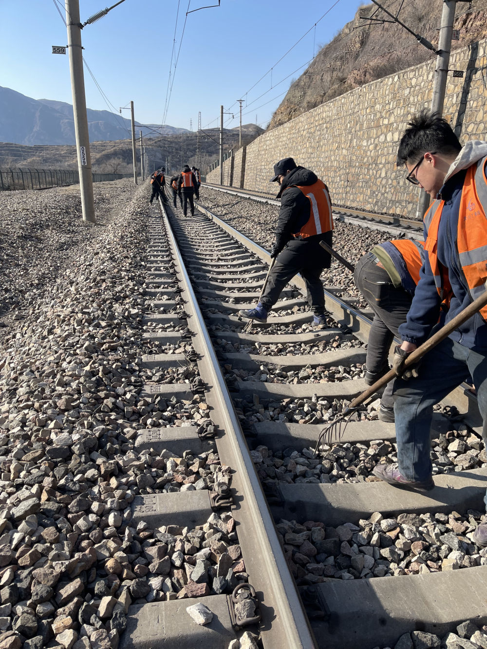 跟随线路工穿越隧道时,车间党总支书记弓建平拿着小手电,平视着前方,脚下步子很稳,每一步都如同肌肉记忆般,都是标准的轨枕间距。“前方有来车,请注意避让!”时刻注意呼啸而过的列车是他们的日常,“钢铁巨龙”卷着刺骨的寒风,煤屑如暴风骤雨般打在身上。