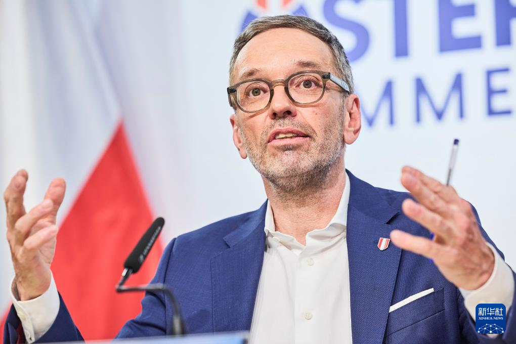 2月12日,奥地利自由党党首基克尔在维也纳的新闻发布会上讲话。新华社发(乔治斯·施耐德摄)
