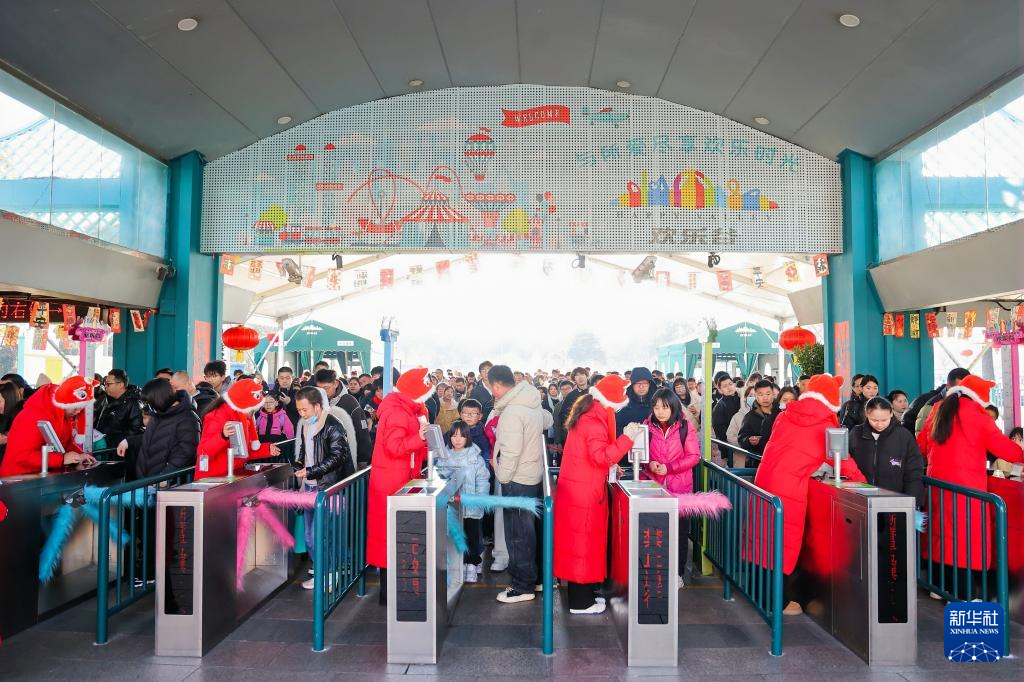 2025年春节假期,游客排队进入上海欢乐谷。新华社发