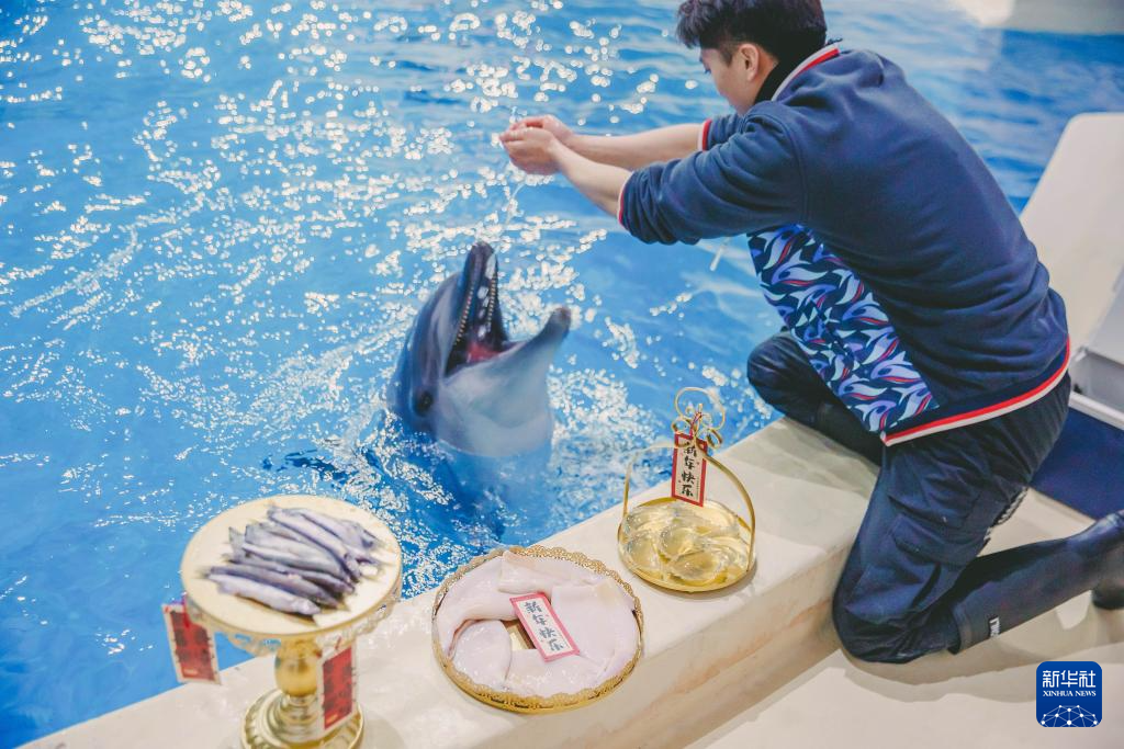 2025年蛇年春节假期,上海海昌海洋公园为海洋动物准备了“新春美食”。新华社发