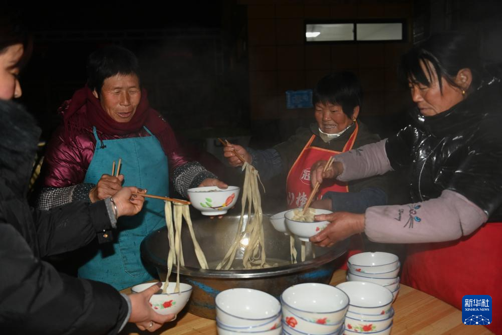 2月11日凌晨,黄花峪村的村民为社火队成员准备早餐。