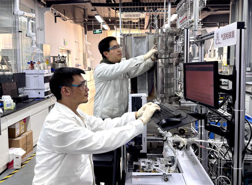 图为制氢团队成员正进行制氢反应评价工作(受访者供图)