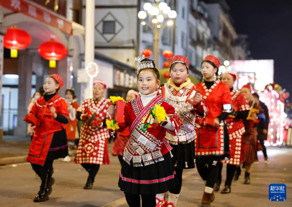 2月6日,参加活动的当地少数民族群众在施秉县城内巡游。