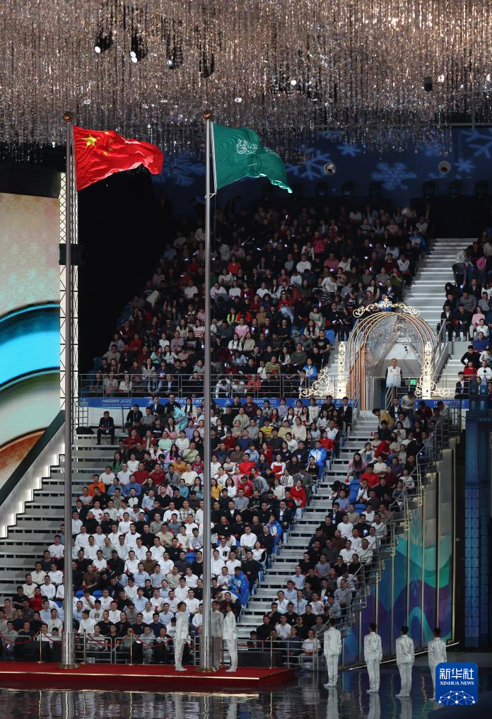 2月14日,中华人民共和国国旗和沙特阿拉伯国旗在闭幕式现场升起。