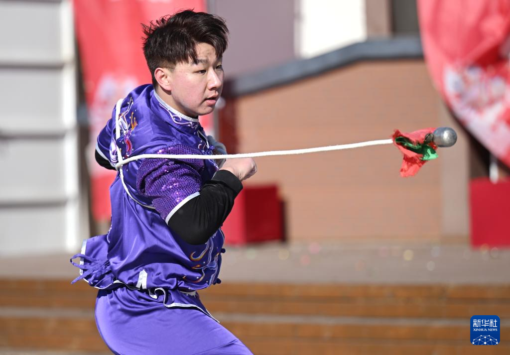 2月7日在天津市北辰区双口镇中河头村拍摄的永新二十四式通背拳展演。