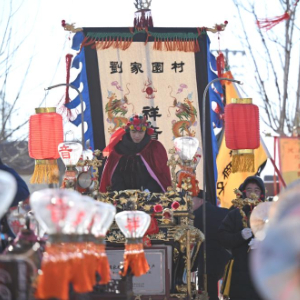 2月7日在天津市北辰区双口镇中河头村拍摄的虫八蜡庙小车会展演。