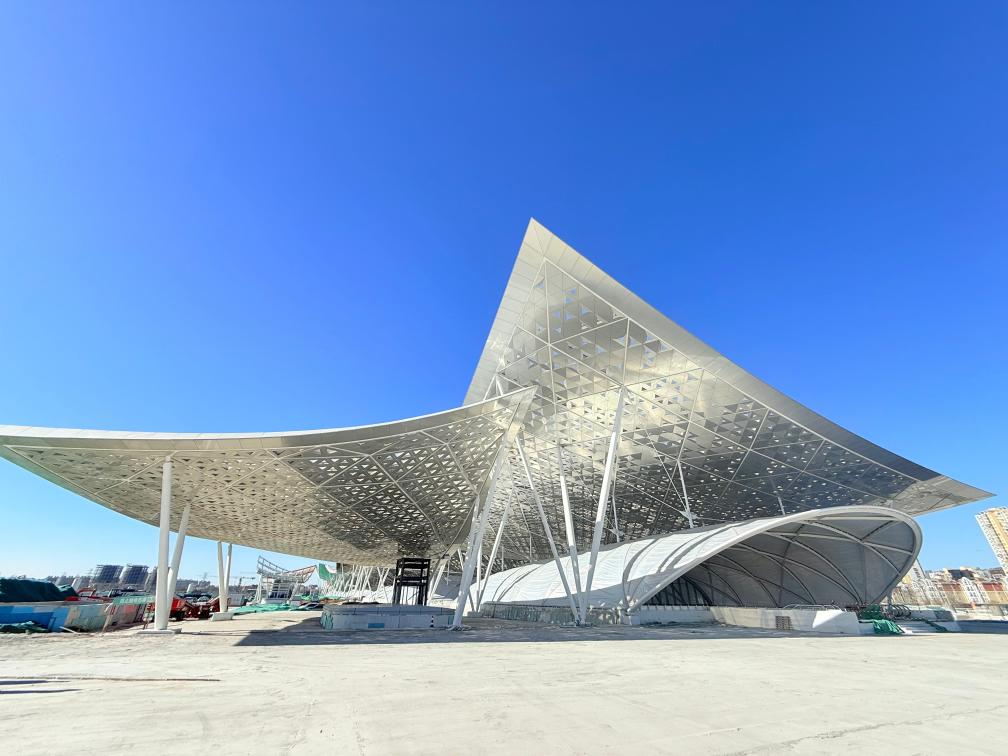 图为北京城市副中心站综合交通枢纽标志性的“京帆”屋盖。新华社记者张骁 摄