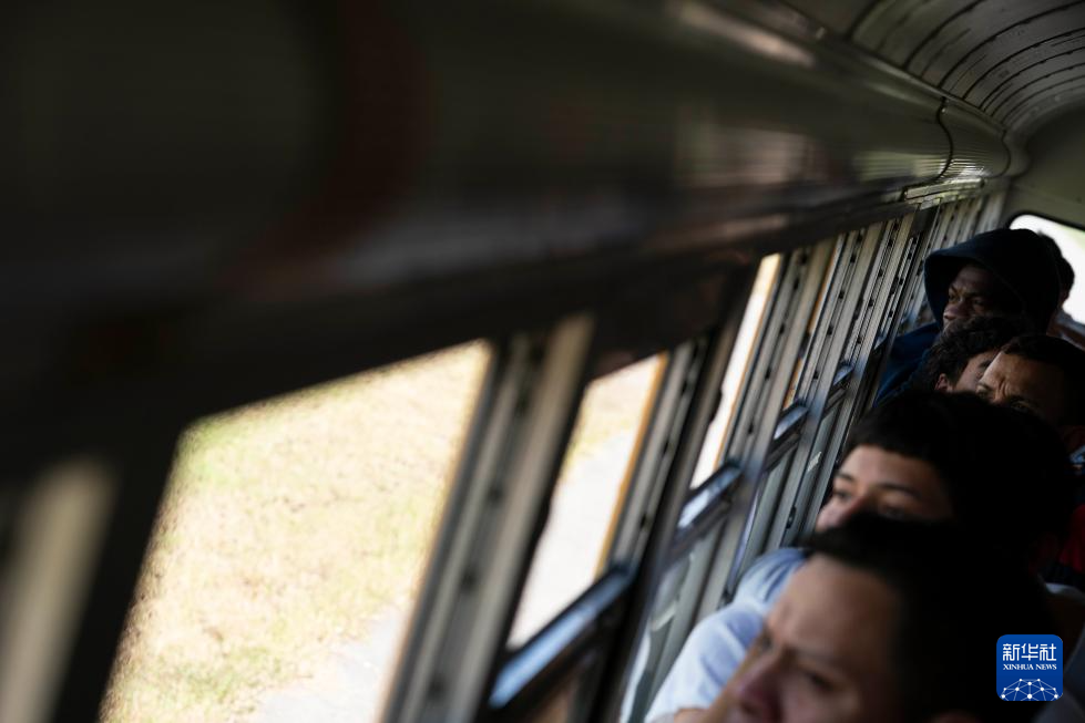 2月14日,在洪都拉斯西北部城市圣佩德罗苏拉,返乡移民乘坐返乡移民援助中心的巴士前往车站。新华社发(戴维 摄)