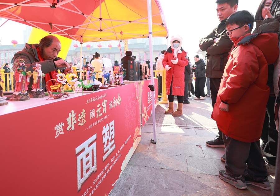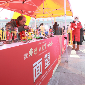 民间艺人在任泽区人民广场上展示非遗面塑技艺。任泽区融媒体中心供图