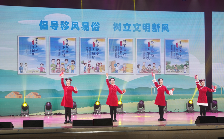 在任泽区春晚上,演员们以“倡导移风易俗 树立文明新风”为主题表演节目。任泽区融媒体中心供图