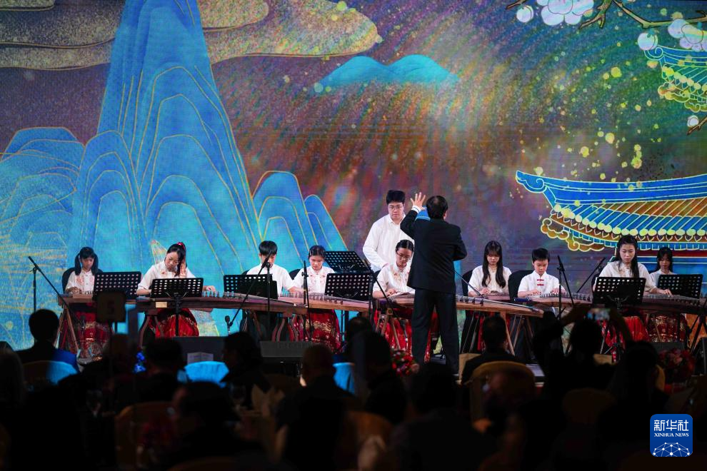 2月16日,澳门青年古筝艺术团在“青春·传承——2025乙巳年澳门文化艺术界新春大联欢”活动上演奏。新华社发(张金加摄)