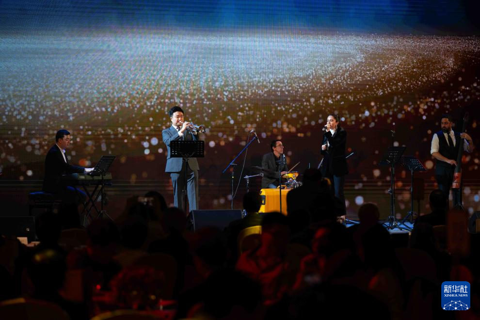 2月16日,演员在“青春·传承——2025乙巳年澳门文化艺术界新春大联欢”活动上表演爵士乐五重奏。新华社发(张金加摄)