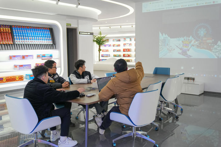 2025年1月7日,在湖南省浏阳市一家烟花贸易企业,“00后”创业团队在讨论产品设计方案。新华社记者 陈泽国 摄