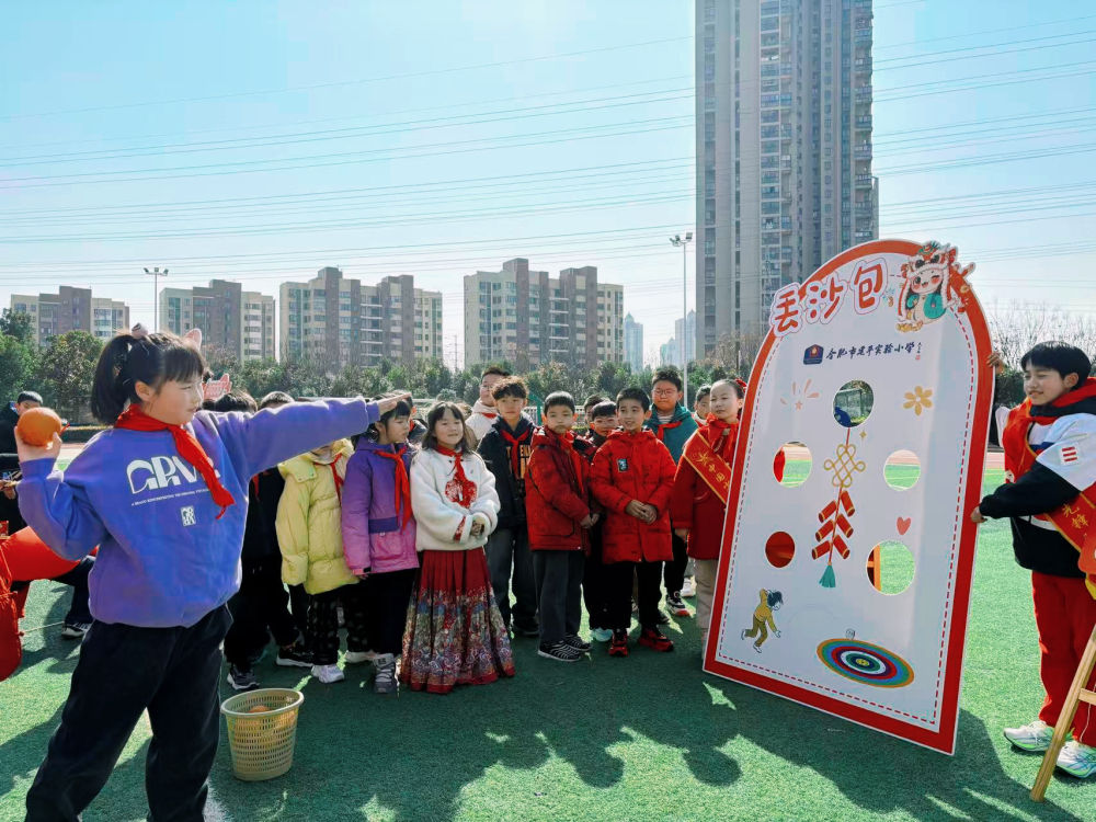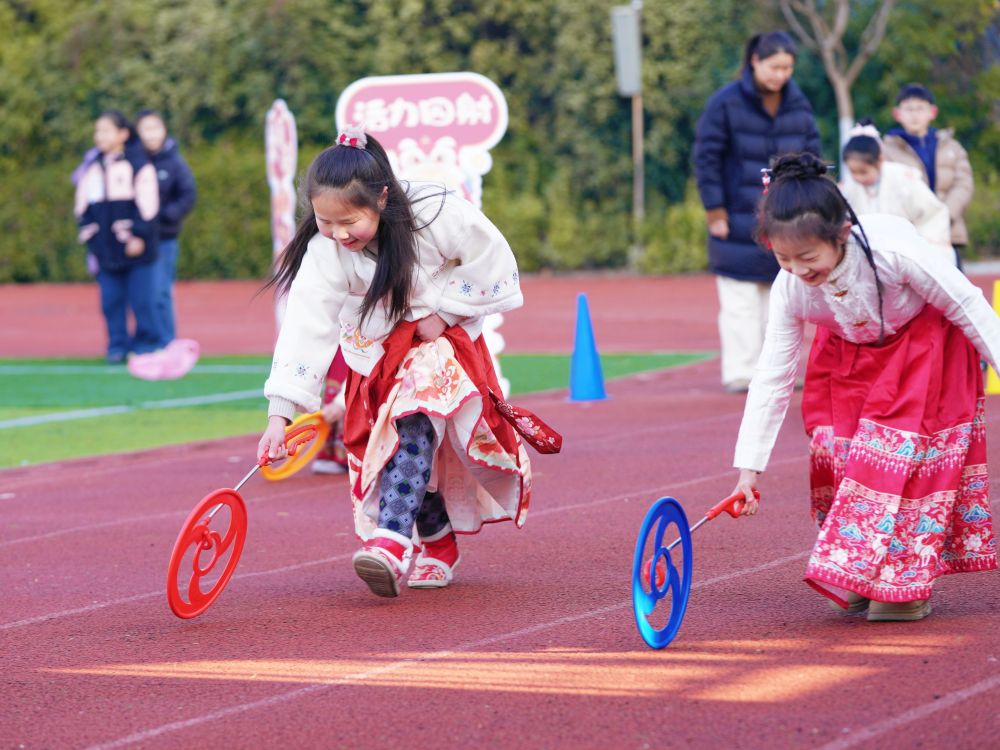 2025年2月13日,安徽省合肥市大通路小学组织学生滚铁环。合肥市教育局供图