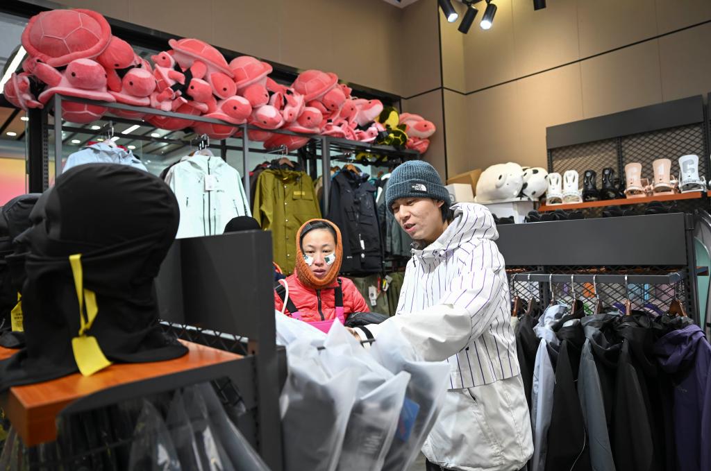 1月24日,游客在将军山国际滑雪度假区的一家雪具店选购商品。新华社记者 胡虎虎 摄