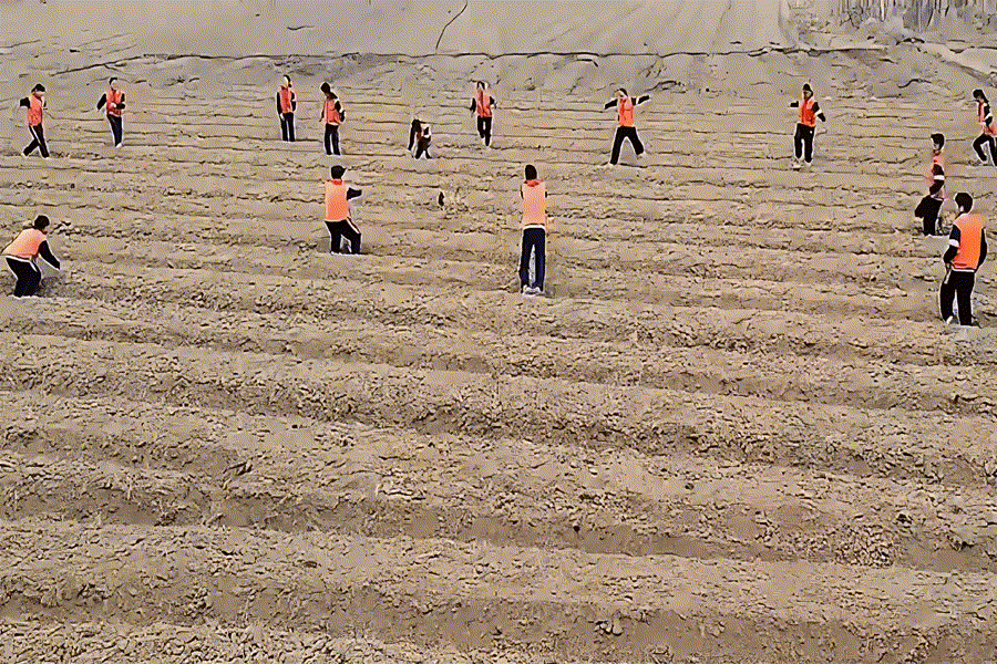 2月19日,在位于广西兴业县的玉林市民族中学,学生们在体育课上玩砸沙包。