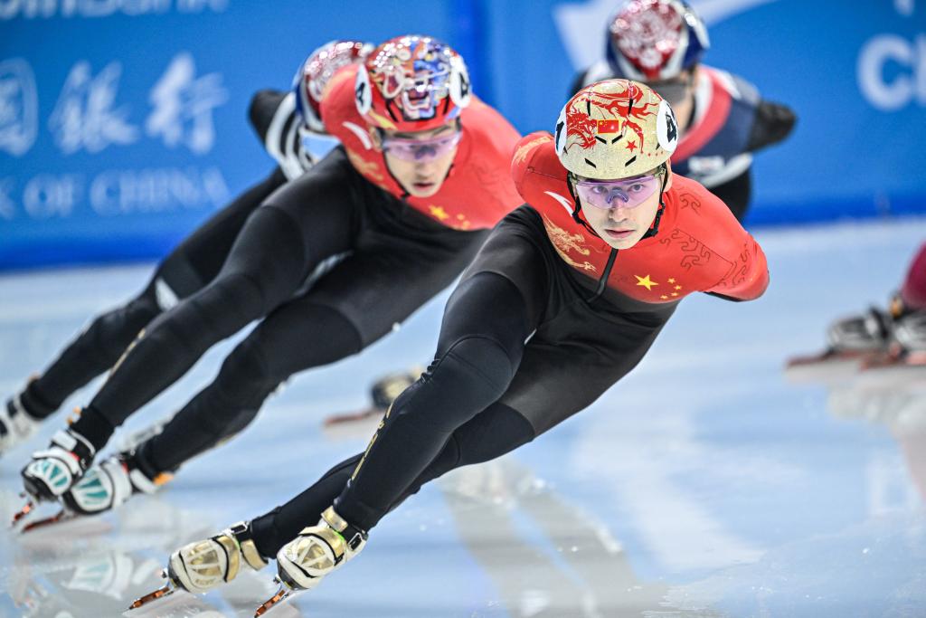 一众冰上高手在直道短、弯道急的冰面上竞速
