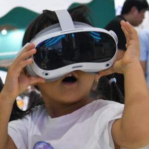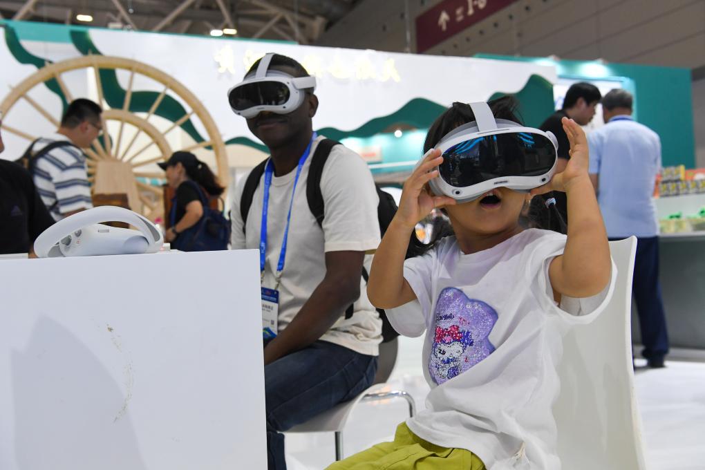 观众在文博会甘肃馆体验VR观影(2024年5月23日摄)。新华社记者 梁旭 摄