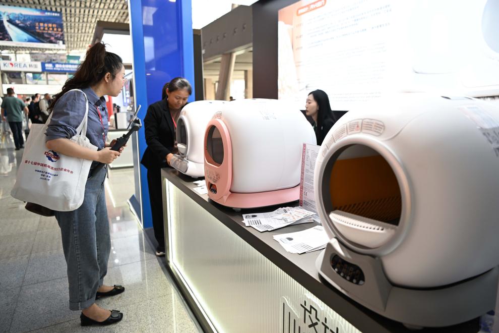 2024年4月17日,参观者在第135届广交会上了解智能猫砂盆产品。新华社记者 邓华 摄