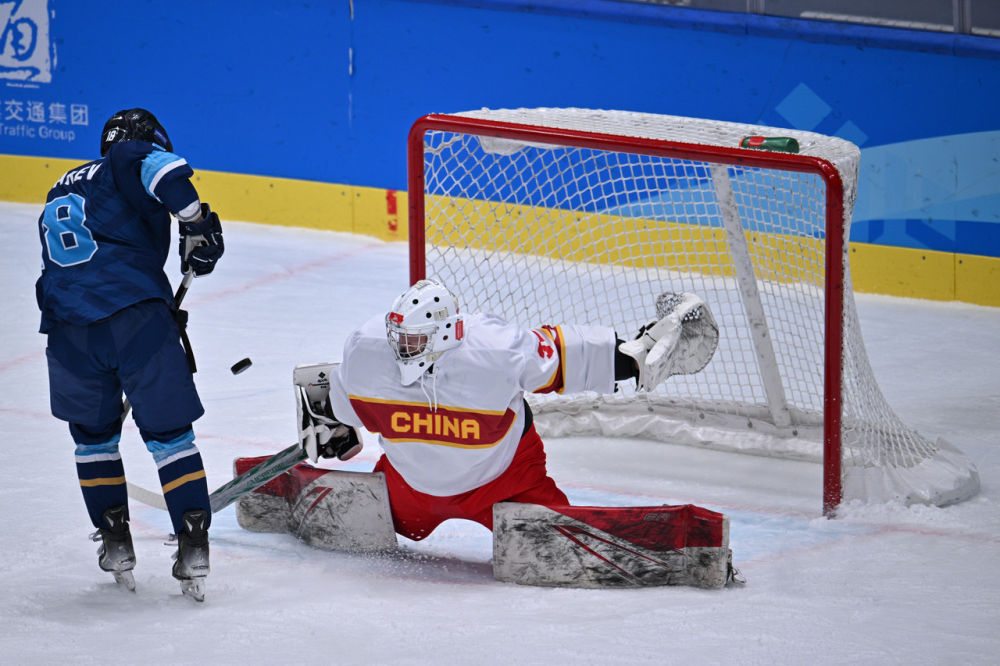 2月5日,中国队守门员孙泽浩在比赛中防守。新华社记者 辛悦卫 摄