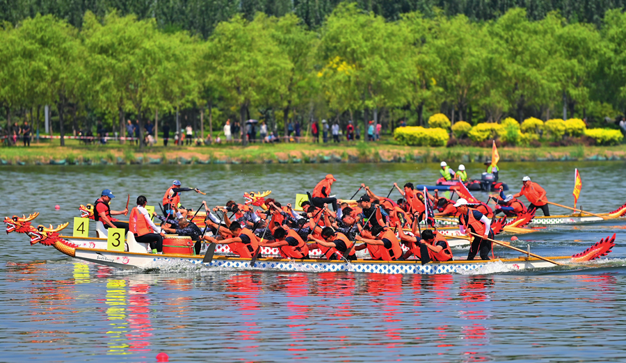 参赛队伍在2024太原汾河龙舟公开赛比赛中(2024年6月10日摄)杨晨光摄/本刊