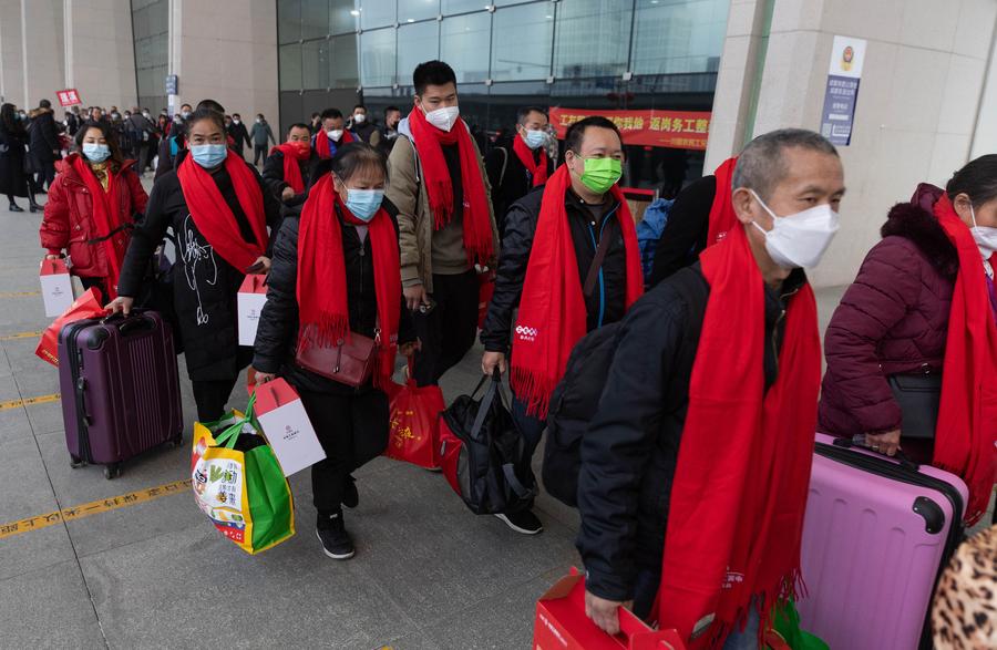 春运返程客流高峰,一趟趟驶离家乡的列车上,大包小包的行李箱延续着家乡的味道。