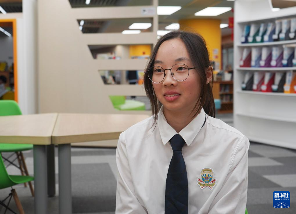 王锦辉中小学学生陈昭瑀讲述自己将大熊猫图案设计在社区海滨长廊中的故事(2025年2月10日摄)。新华社发(谭佳铭摄)