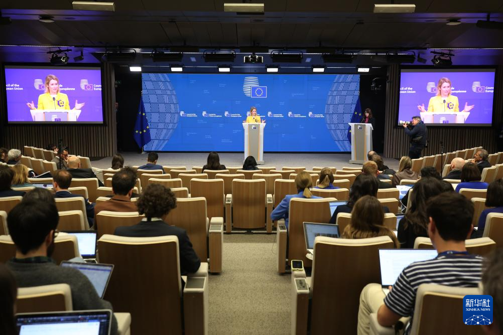 2月24日,欧盟外交与安全政策高级代表卡拉斯在比利时布鲁塞尔出席新闻发布会。新华社记者 赵丁喆 摄
