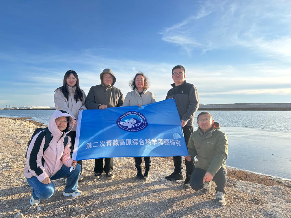 2024年11月25日,王建萍(右三)和科研团队在盐湖进行野外考察。(受访者供图)