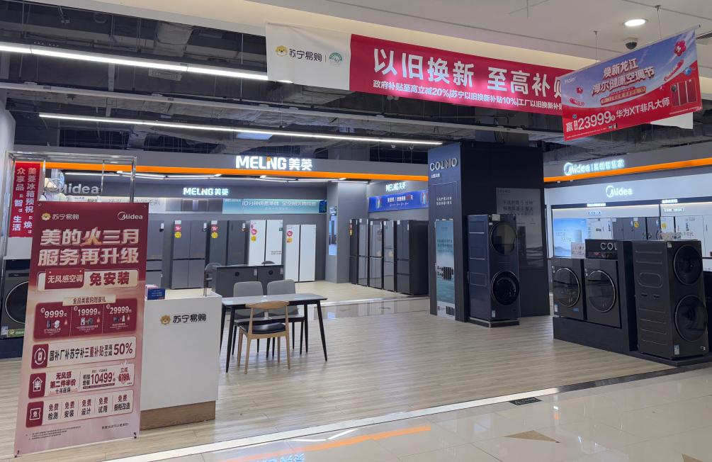 走进哈尔滨哈西万达苏宁易购商场,“国补以旧换新至高20%”“单件最高补贴2000元”等宣传标语映入眼帘。工作人员李爽介绍,消费者只需登录当地消费品以旧换新平台申领获取资格,到店或在线购买后核销补贴优惠即可。“政策出台以来,商场客流量明显增长,销售量也随之增长。”