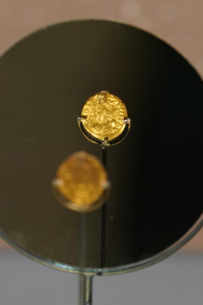西部机场博物馆展出的北周保定元年的东罗马金币(2月26日摄)。新华社记者 邵瑞 摄