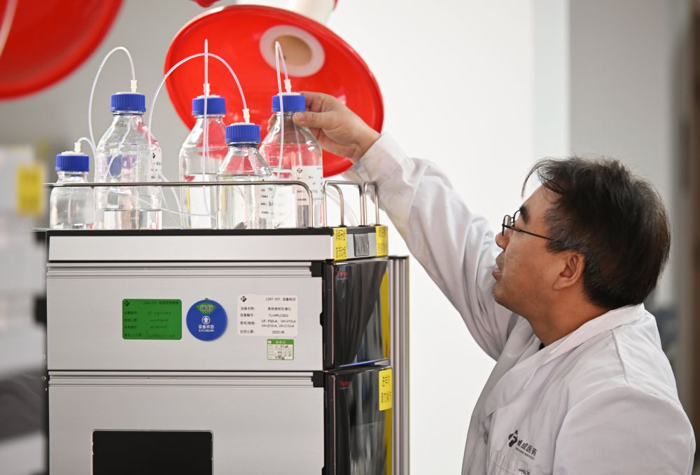在位于天津滨海—中关村科技园的峰成医药科技(天津)有限公司,科研人员在分析实验室内工作(2月20日摄)。新华社记者李然摄