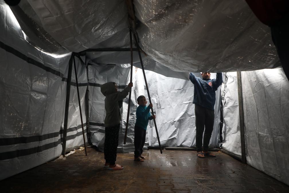 目前正值冬季,频发的降雨和狂风更加凸显了加沙地带必备物资的短缺。2月6日,加沙地带暴雨大作,强风肆虐,临时搭建的帐篷根本无法抵御这种恶劣天气。当新华社记者在加沙地带中部的代尔拜拉赫见到奥姆时,她正在“抢救”狂风暴雨中仅存的一些物品。