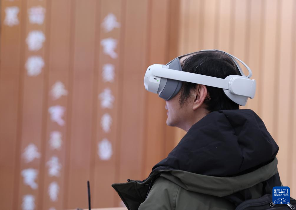 3月2日,在日本大阪,工作人员在世博会中国馆内参观体验。新华社记者 贾浩成 摄