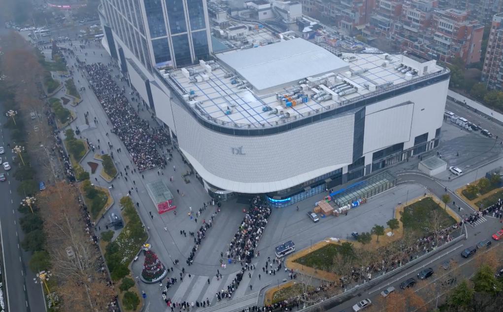 2月2日,在胖东来天使城店,顾客正在广场上排队等待进入超市。新华社发(王永涛 摄)