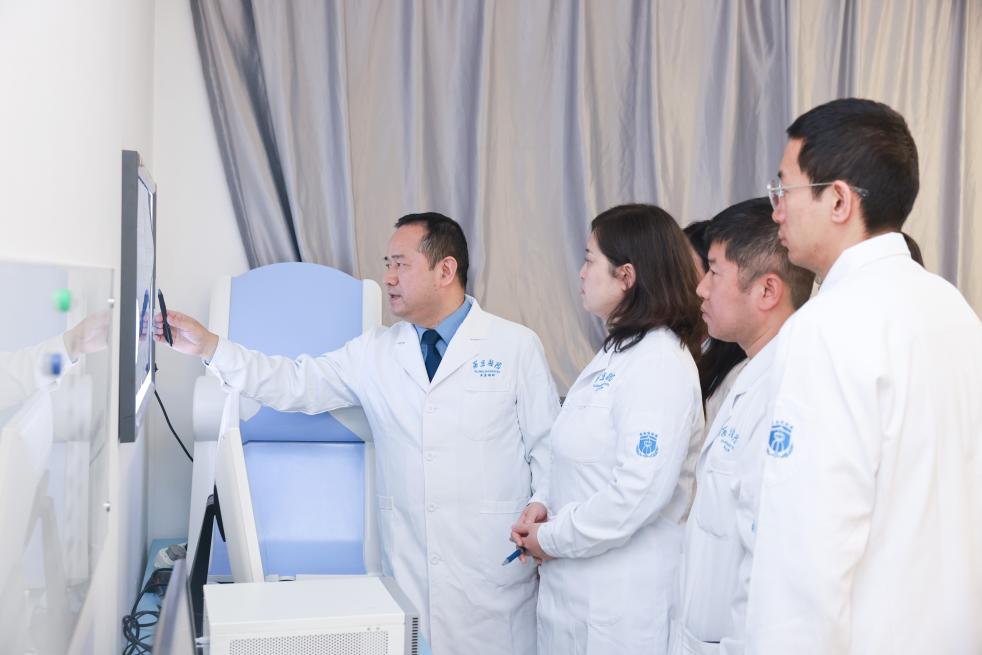 图为空军军医大学西京医院耳鼻咽喉头颈外科主任医师查定军与团队讨论诊疗方案。新华社发 王鑫 摄